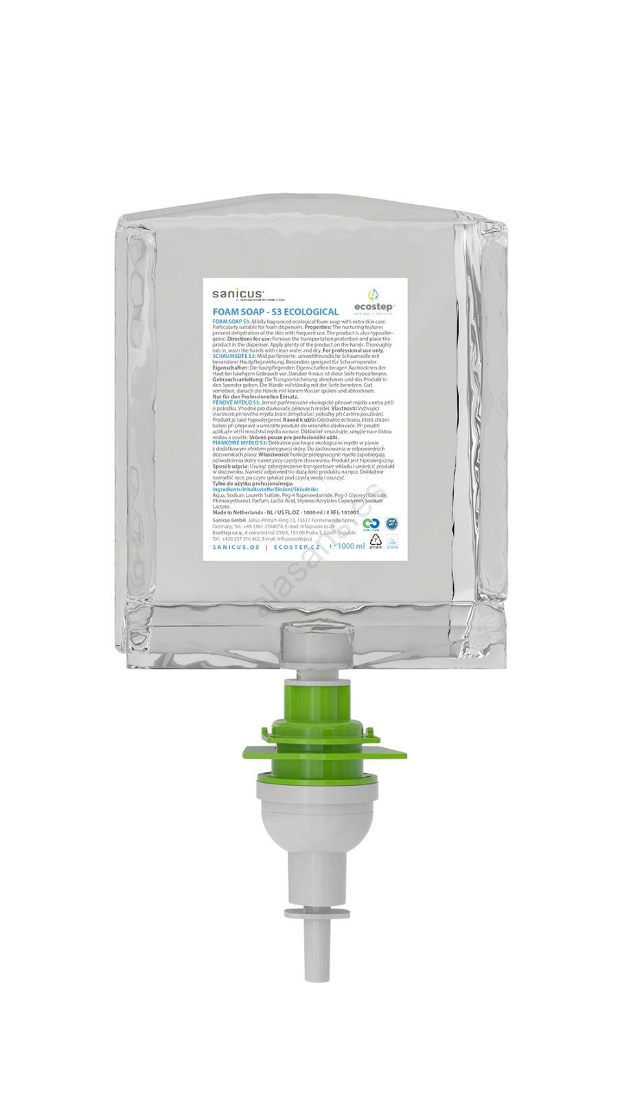 EcoStep 50051 - Dispensador de jabón sin contacto S3 1000 ml 4xAA blanco