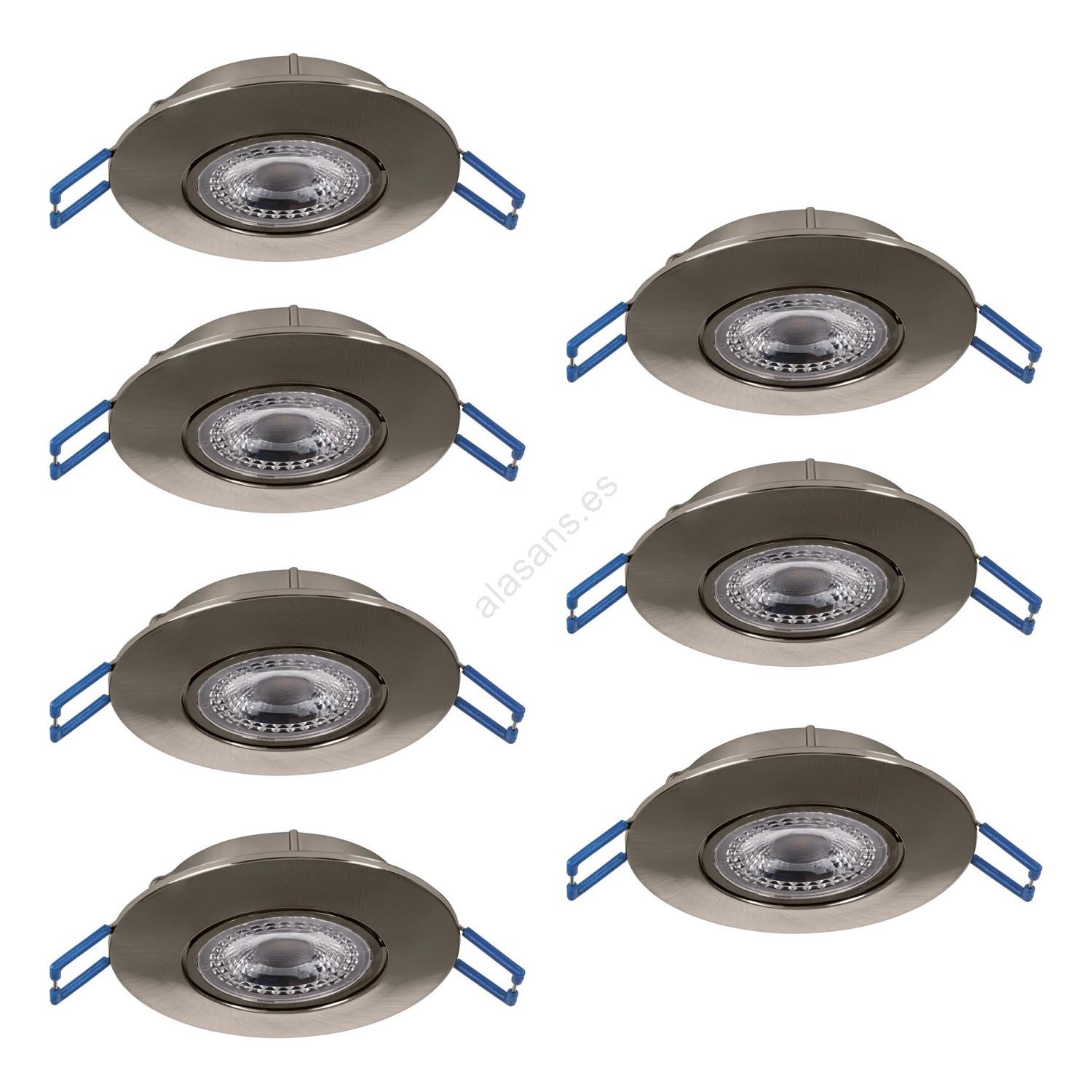 • Eglo - Juego de 7 focos empotrables LED, 4,9 W, 230 V, 2700/4000/6500 K, Ø 9 cm, cromo mate