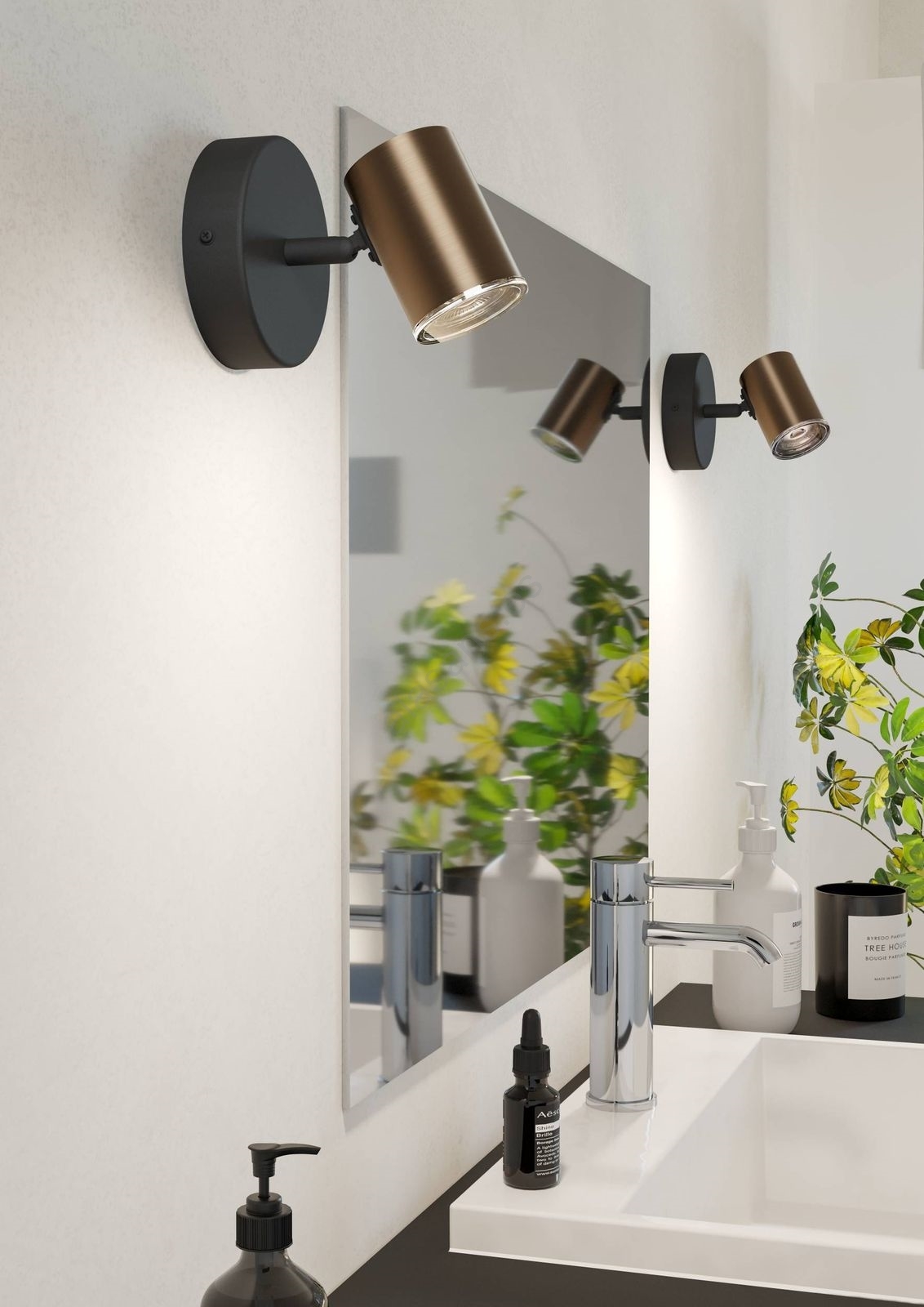 • Eglo - Aplique de pared para baño tipo foco 1xGU10/5W/230V IP44 negro/dorado