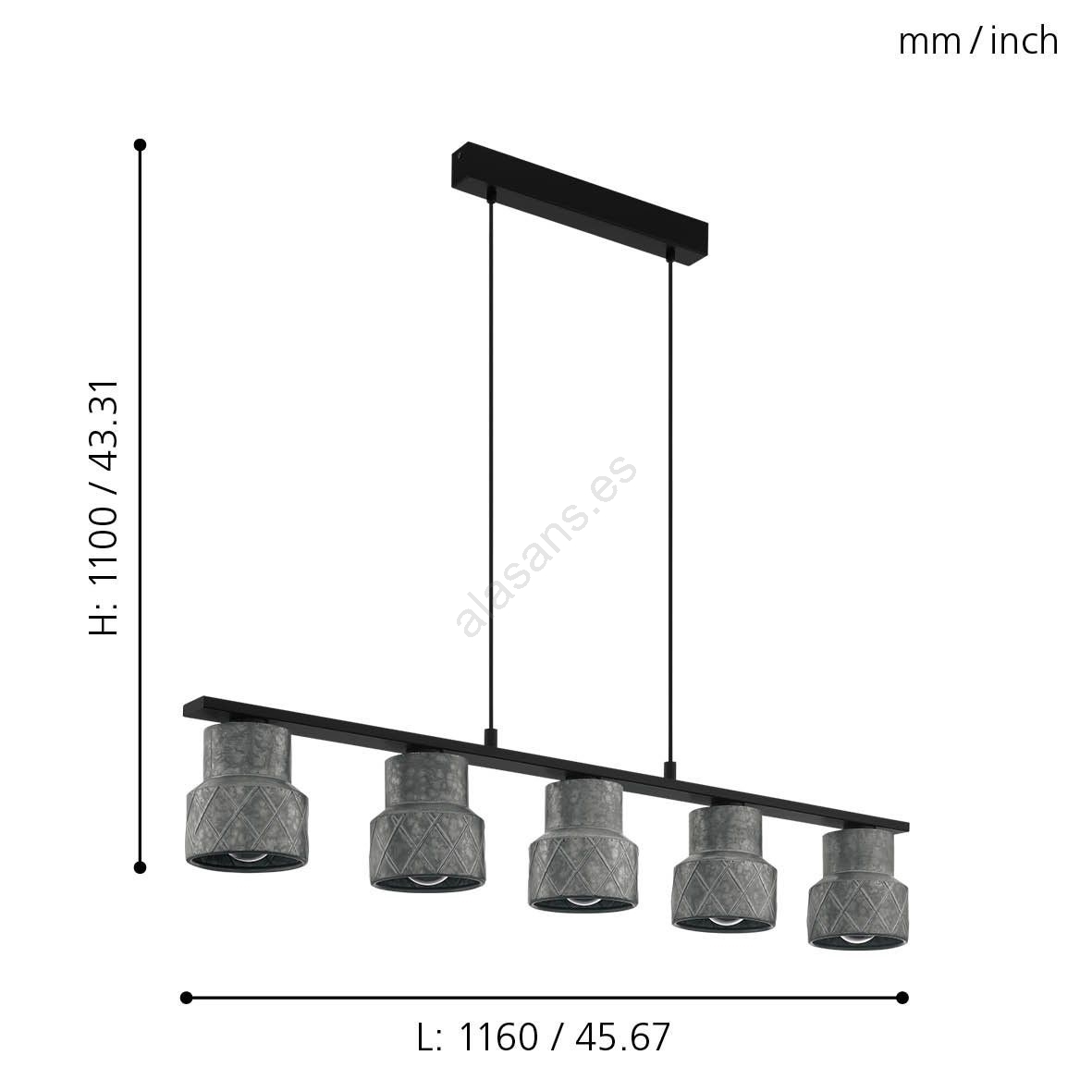 Eglo 39855 - Lámpara colgante con cable HILCOTT 5xE27/40W/230V