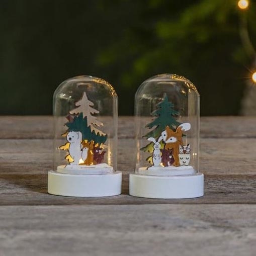 • Juego de 2 adornos navideños de LEDs hechos de madera cortada con láser.