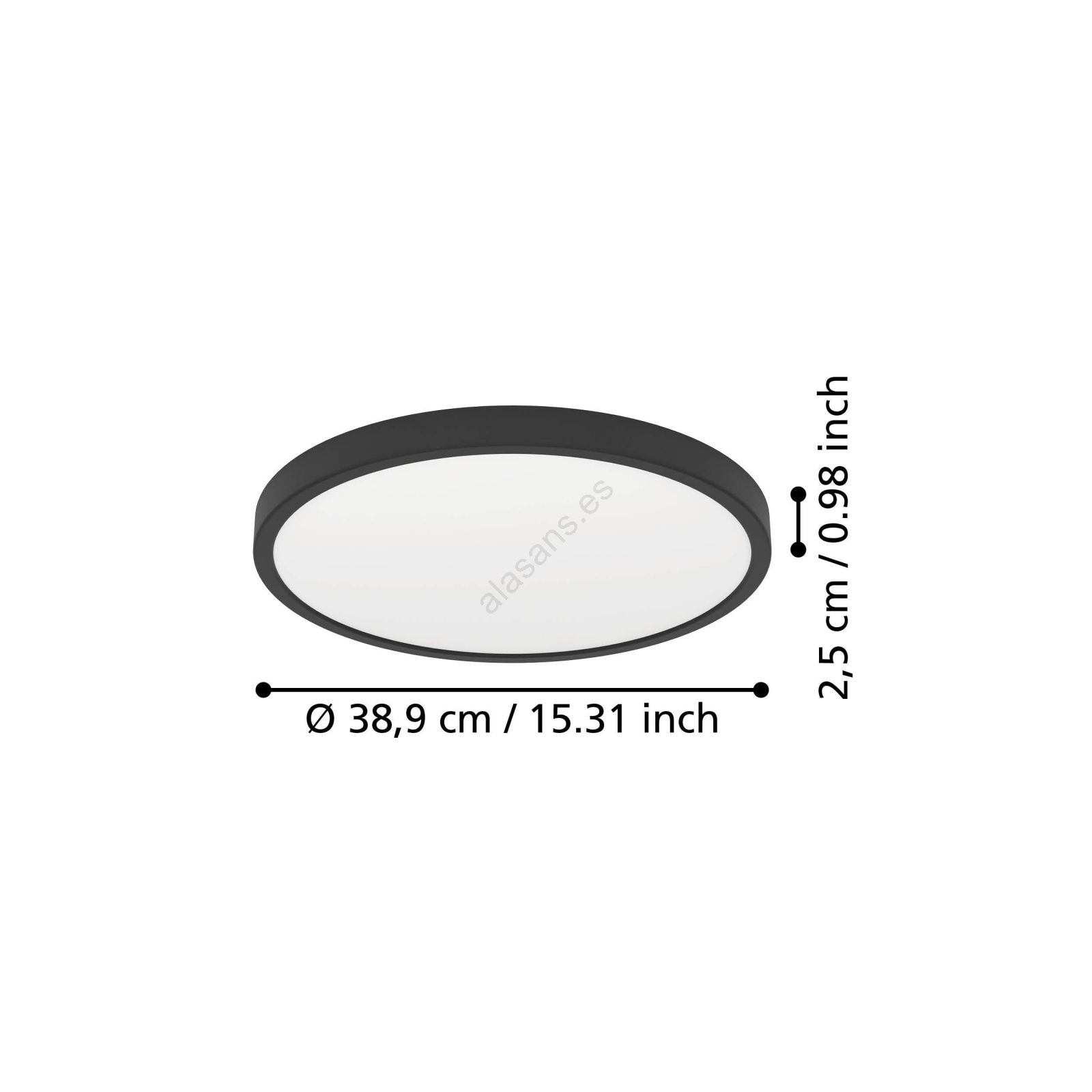 Eglo - Lámpara de techo LED 17 W, 230 V, 2700/4000/6500 K, Ø 38,9 cm, negra