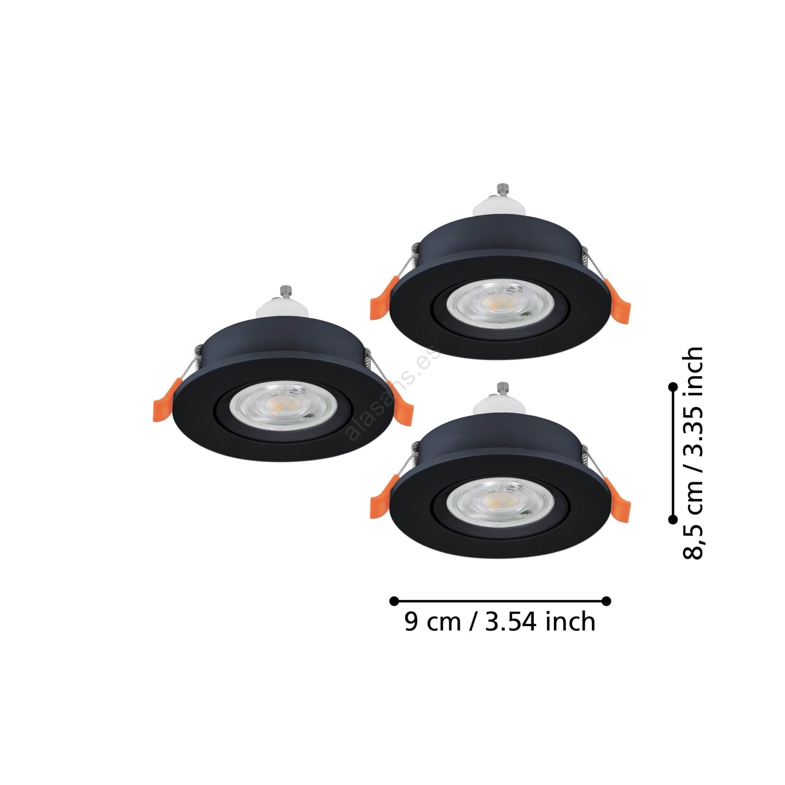 • Eglo - Juego de 3 focos empotrables LED, 1x GU10/4,5W/230V, negro