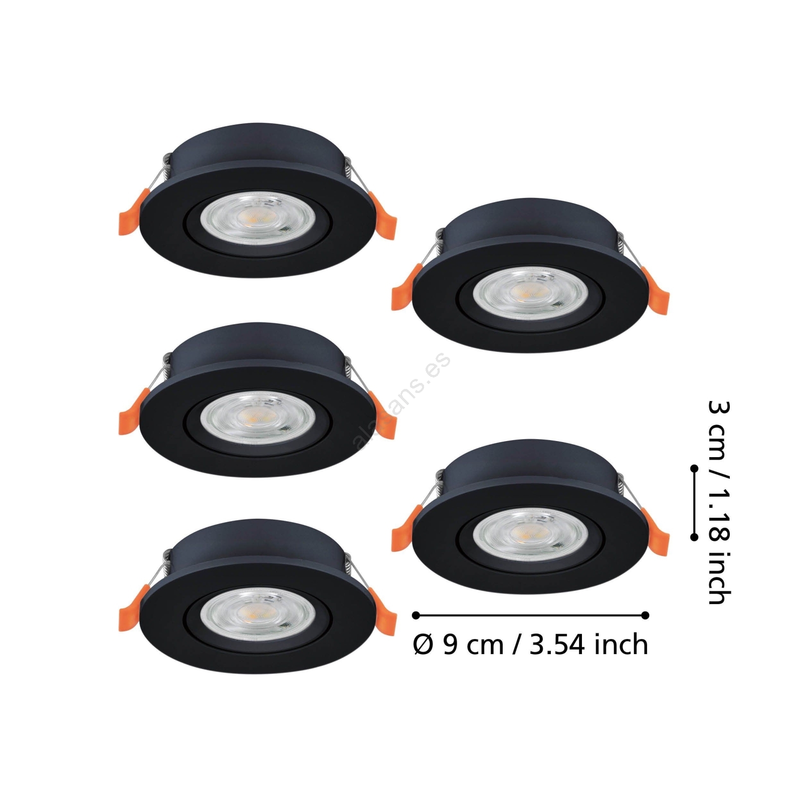 • Eglo - Set de 5 focos empotrables LED, 4,8 W, 230 V, 2700/4000/6500 K, negro