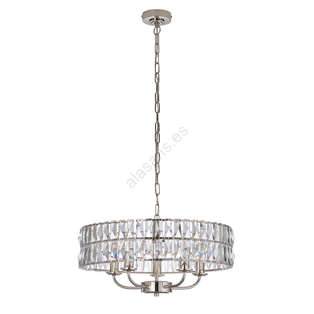 • Endon 104467 - Lámpara colgante con cadena CLIFTON 5xE14/6W/230V cromo brillante/transparente diá. 50,5 cm
