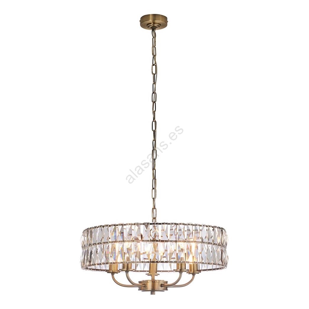 • Endon 106244 - Lámpara colgante con cadena CLIFTON 5xE14/6W/230V latón/vidrio transparente