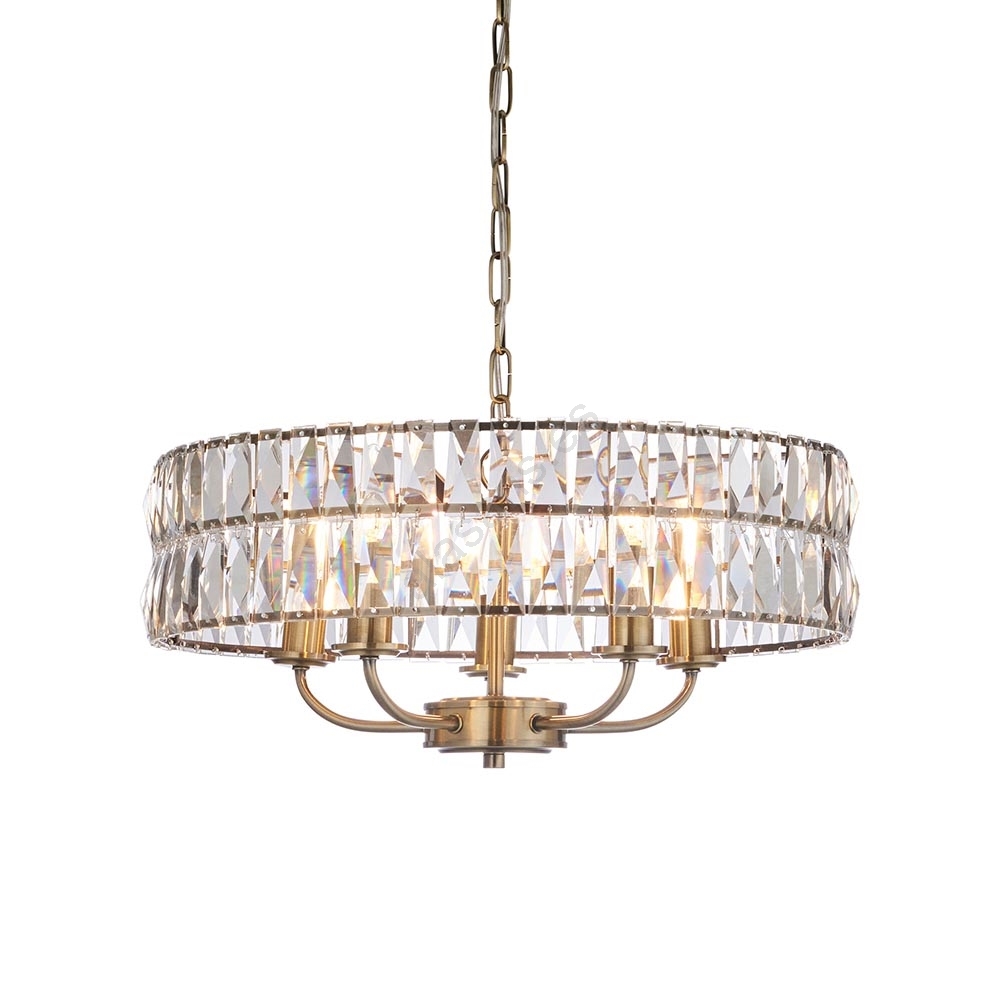 Endon 106244 - Lámpara colgante con cadena CLIFTON 5xE14/6W/230V latón/vidrio transparente