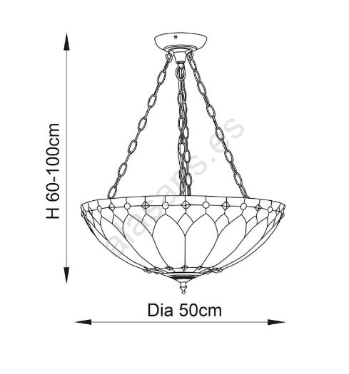 Endon 63976 - Lámpara colgante con cadena Tiffany BROOKLYN 3xE27/60W/230V, diámetro 50 cm