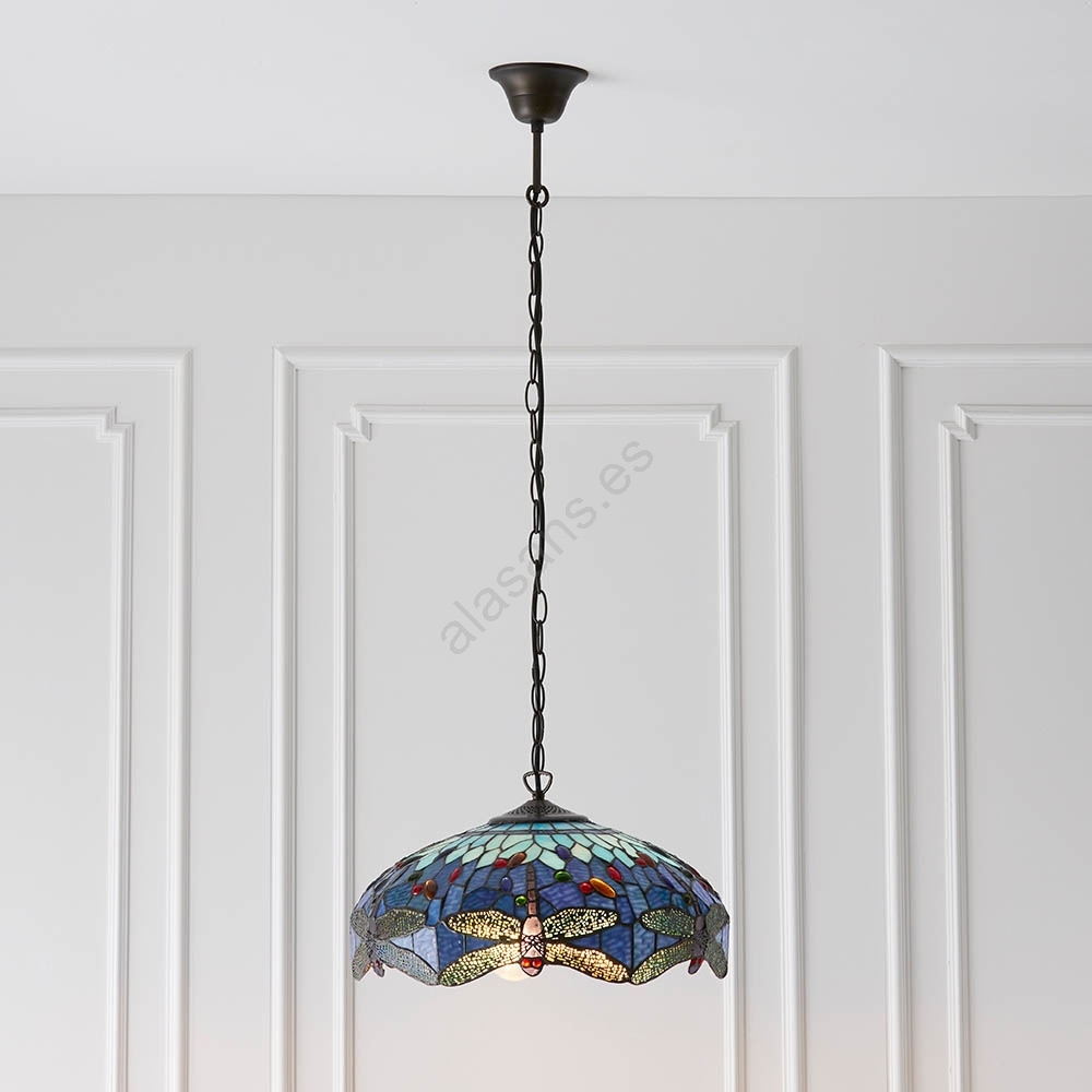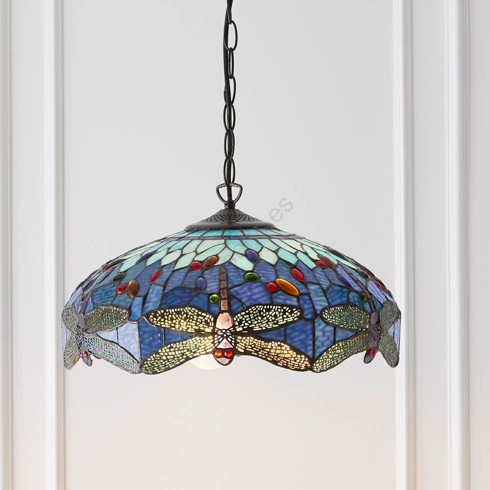Endon 64080 - Lámpara colgante con cadena Tiffany DRAGONFLY 3xE27/60W/230V Ø 41 cm