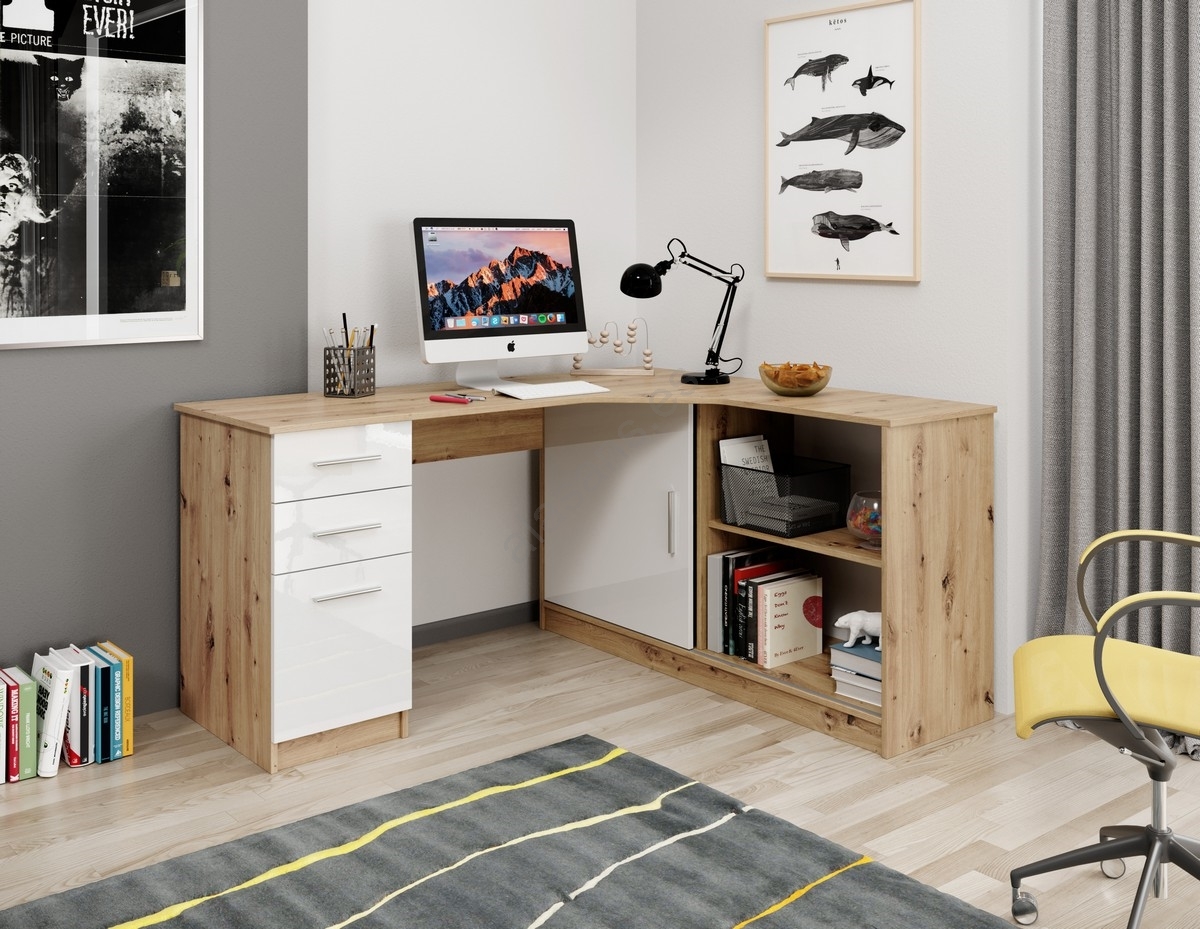 Escritorio con estante y cajones ROBERTO, lado derecho, roble artisan/blanco