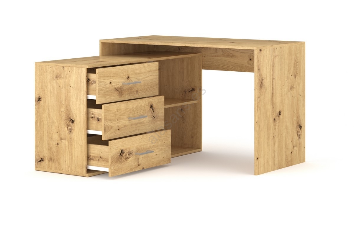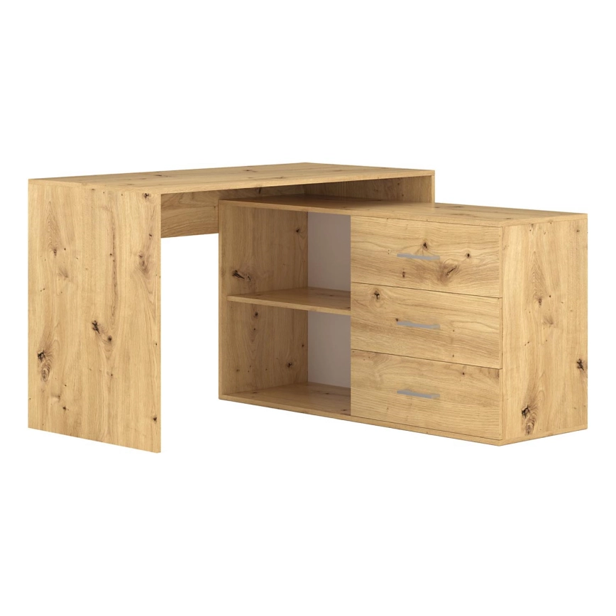 Escritorio JULES, práctico y versátil, con cajones y esquina reversible (derecha/izquierda), acabado roble Artisan