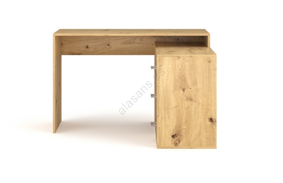 • Escritorio JULES, práctico y versátil, con cajones y esquina reversible (derecha/izquierda), acabado roble Artisan