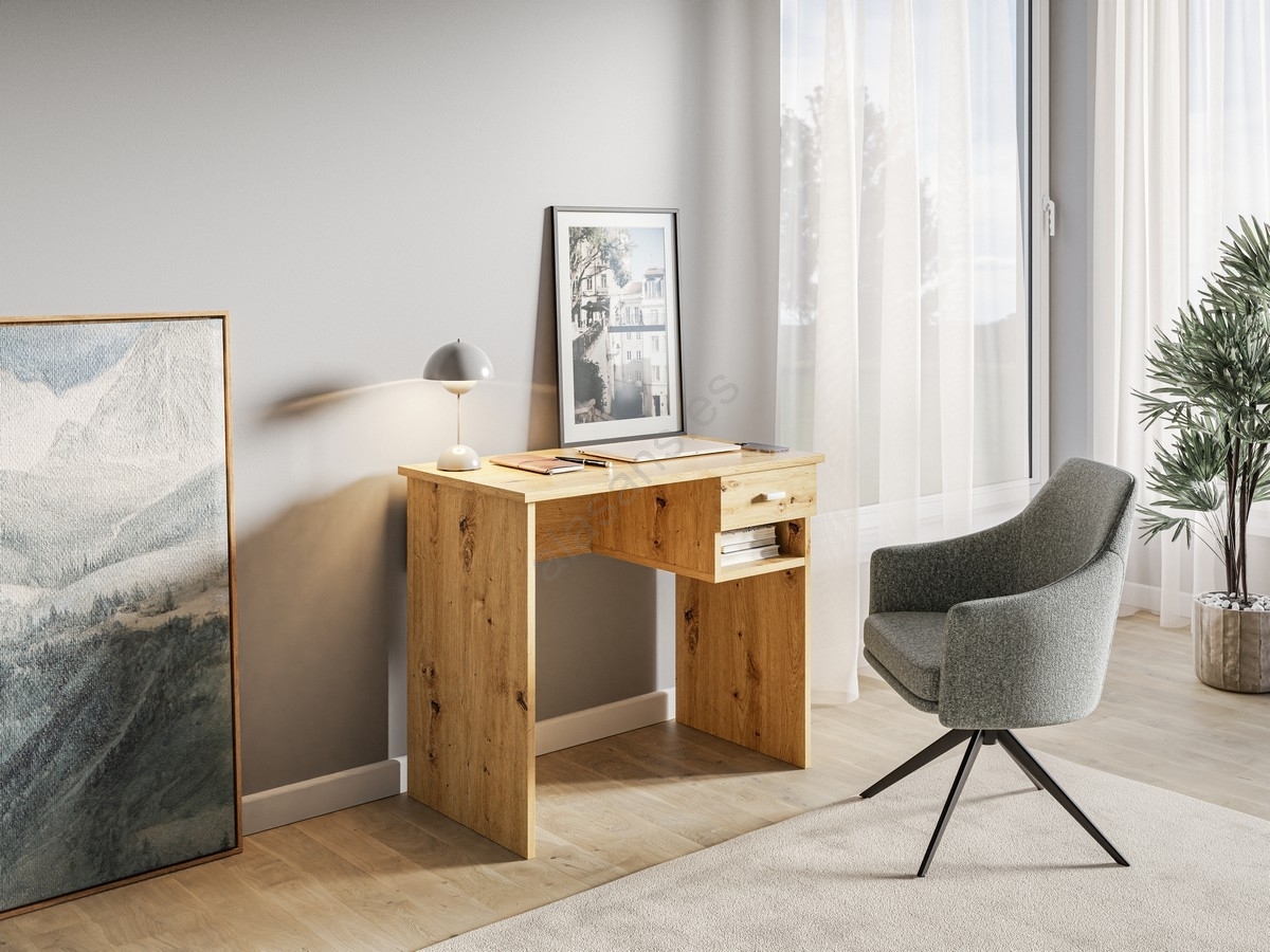 • Ofrece una amplia área de trabajo, un compartimento abierto para libros o accesorios y un cajón para mantener tu espacio organizado.