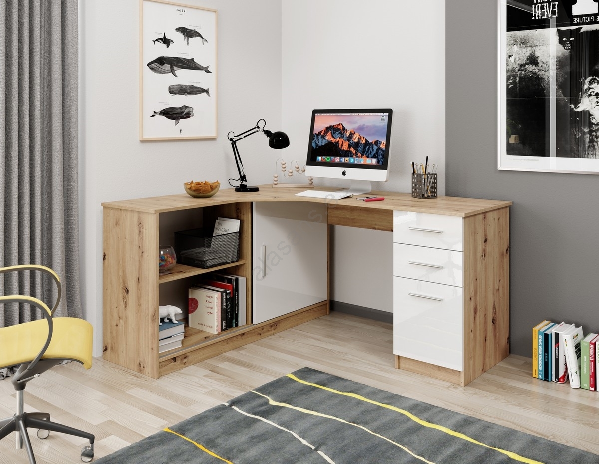 Escritorio con estante y cajones ROBERTO, izquierdo, roble artisan/blanco