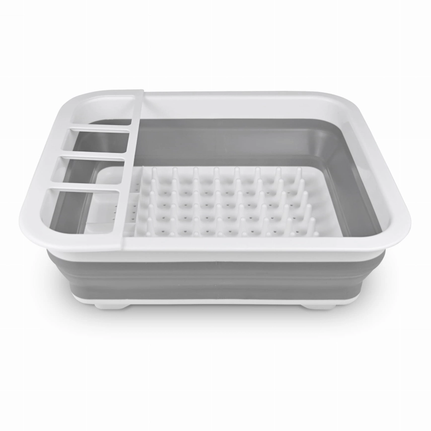 • El material es silicona de grado alimentario combinada con un marco rígido — ligero, flexible pero al mismo tiempo lo bastante estable para que el agua escurra de la vajilla.