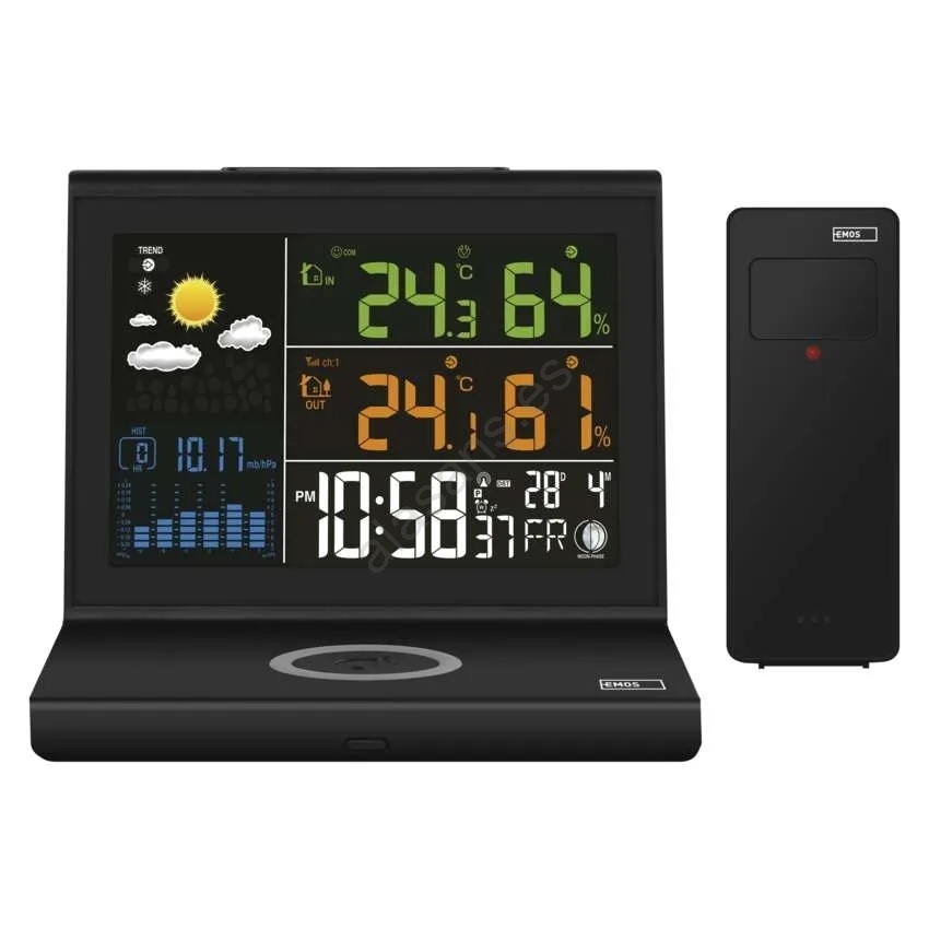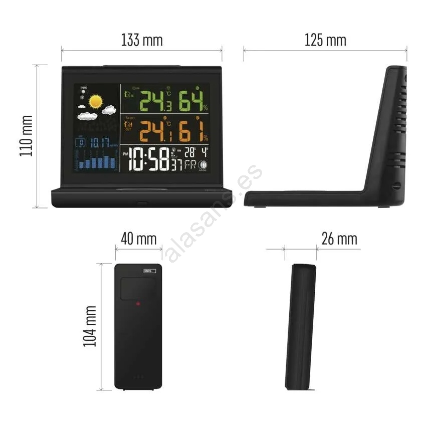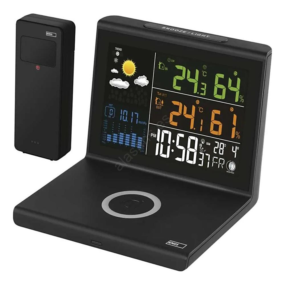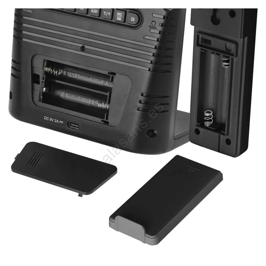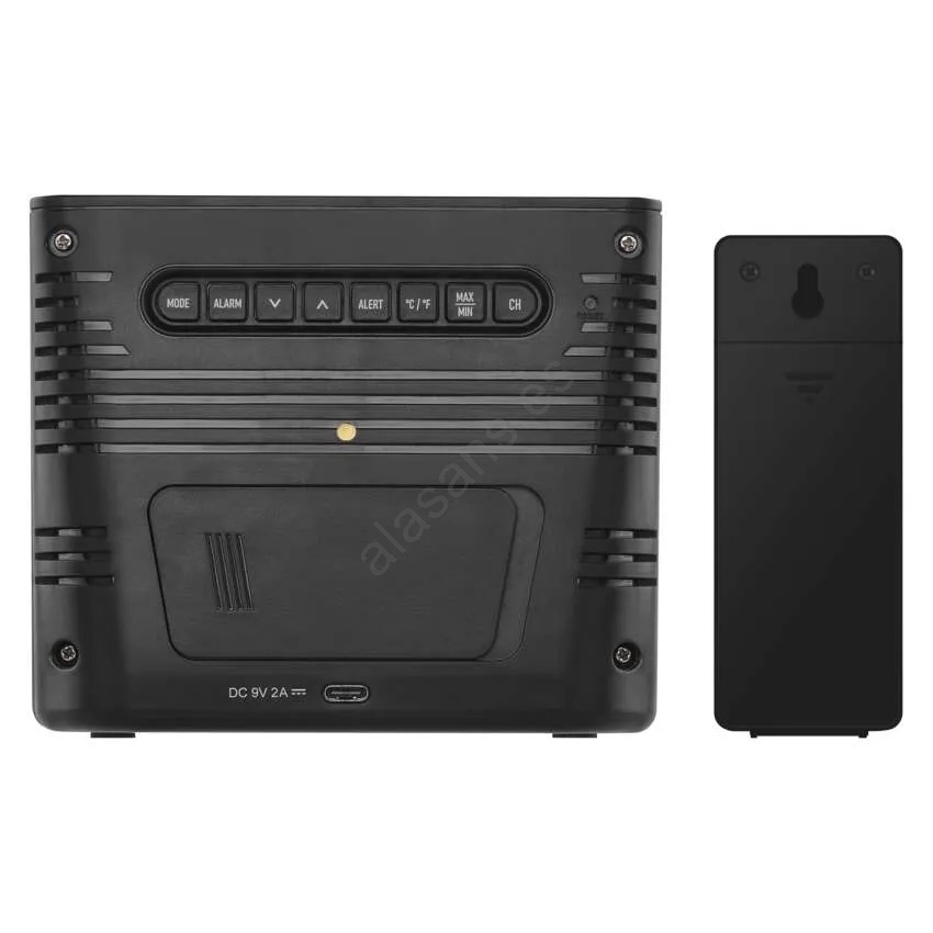 Estación meteorológica con carga inalámbrica 5V, 2x AA + 2x AAA, negra