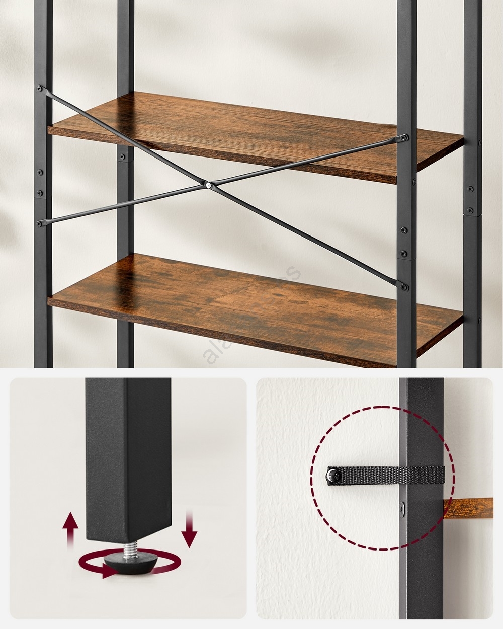 • El sistema de anclaje anti-vuelco incluido te ayudará a fijar la estantería, aumentando su estabilidad y manteniéndola segura en la pared.