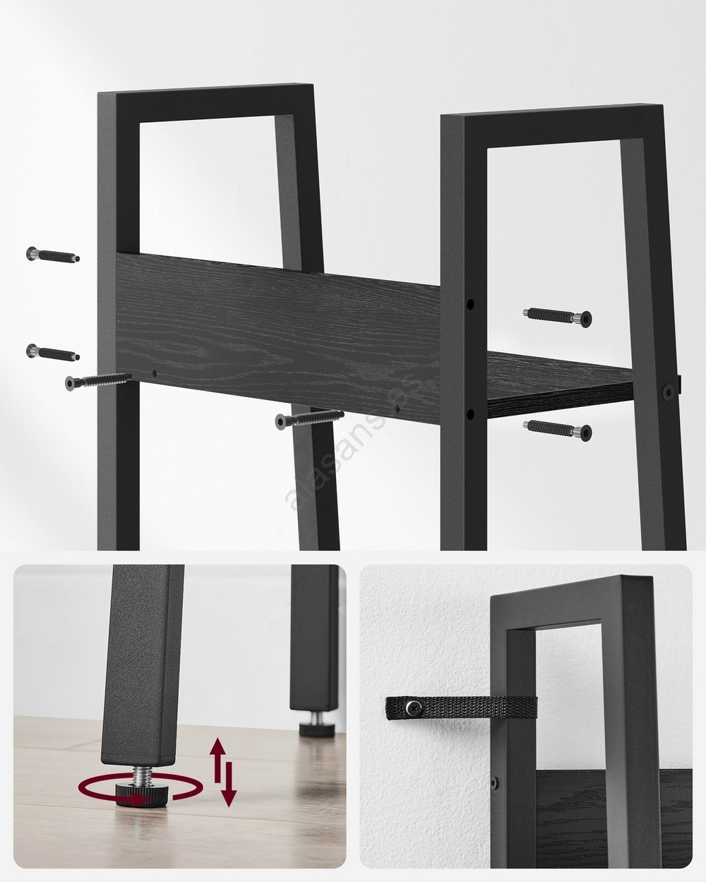 • Los pies ajustables y el kit antivuelco aseguran que tu estantería sea estable y no se tambalee.