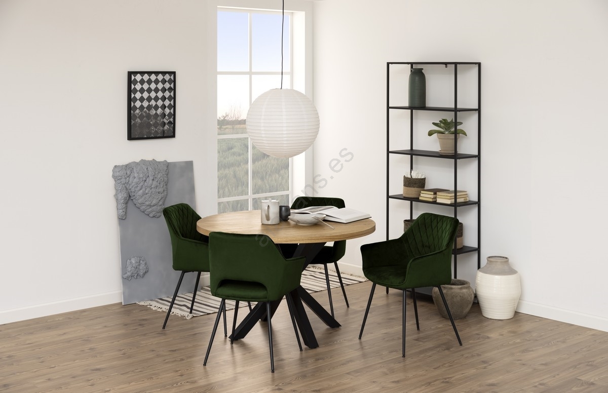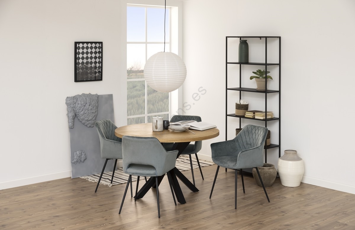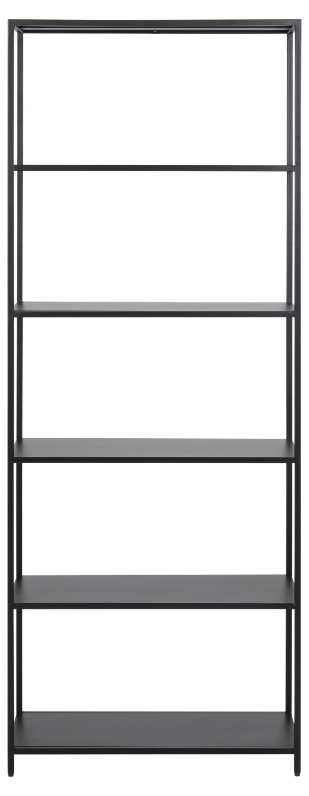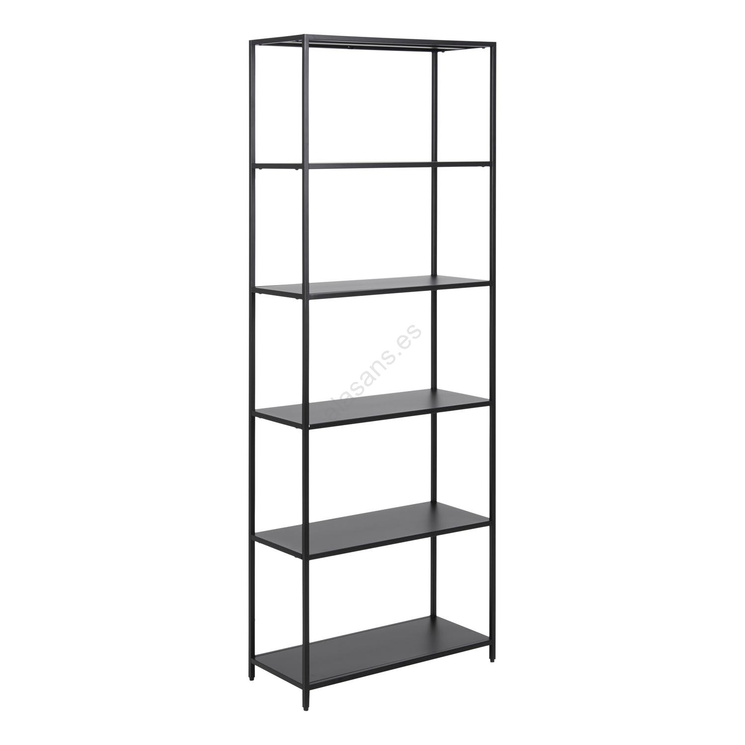 • Estructura, 5 estantes y base de acero negro mate con un acabado en polvo rugoso.