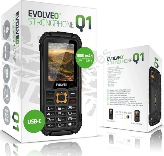 Evolveo-StrongPhone Q1, teléfono Dual SIM resistente al agua, negro y naranja