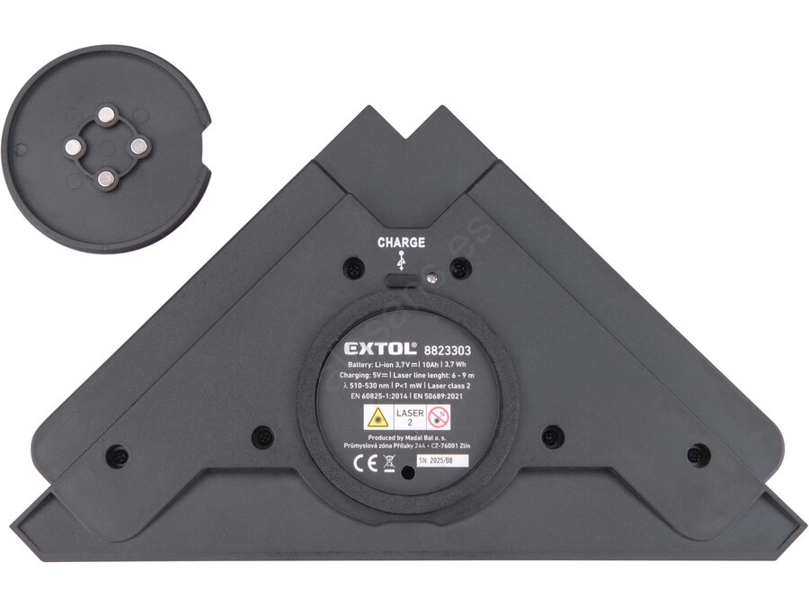 Extol Premium - Escuadra láser de 90° con módulo de succión eléctrico 5V/1000 mAh