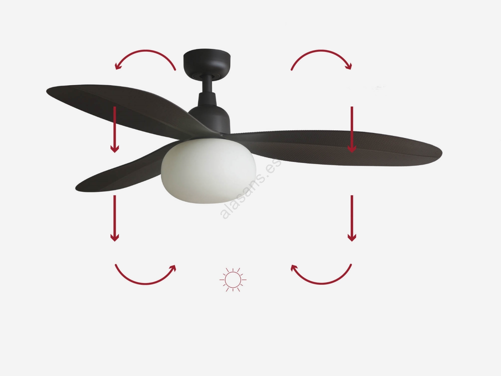 • Este ventilador tiene función de reversa verano-invierno, por lo que también puede usarse en invierno (ahorro en costos de calefacción en invierno de hasta el 20 %).