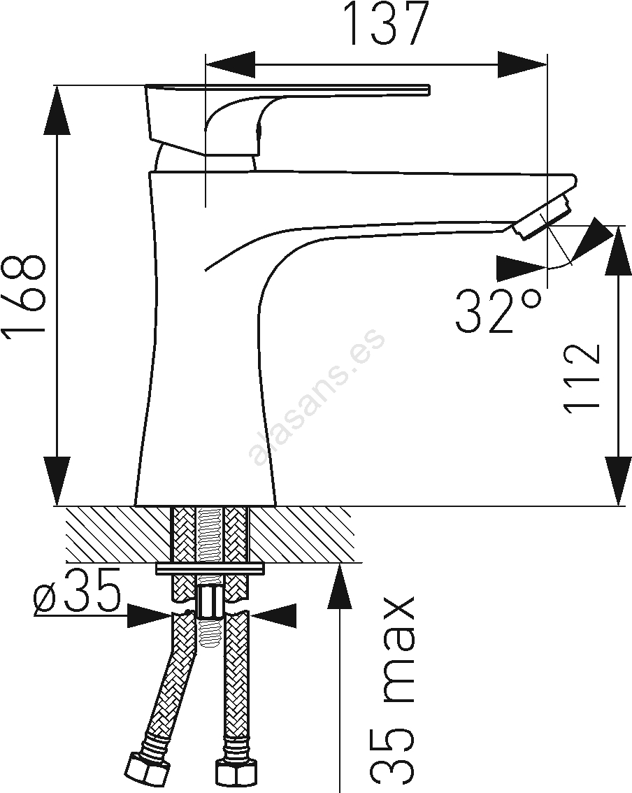 • Mecanismo de control: cartucho cerámico de 35 mm.