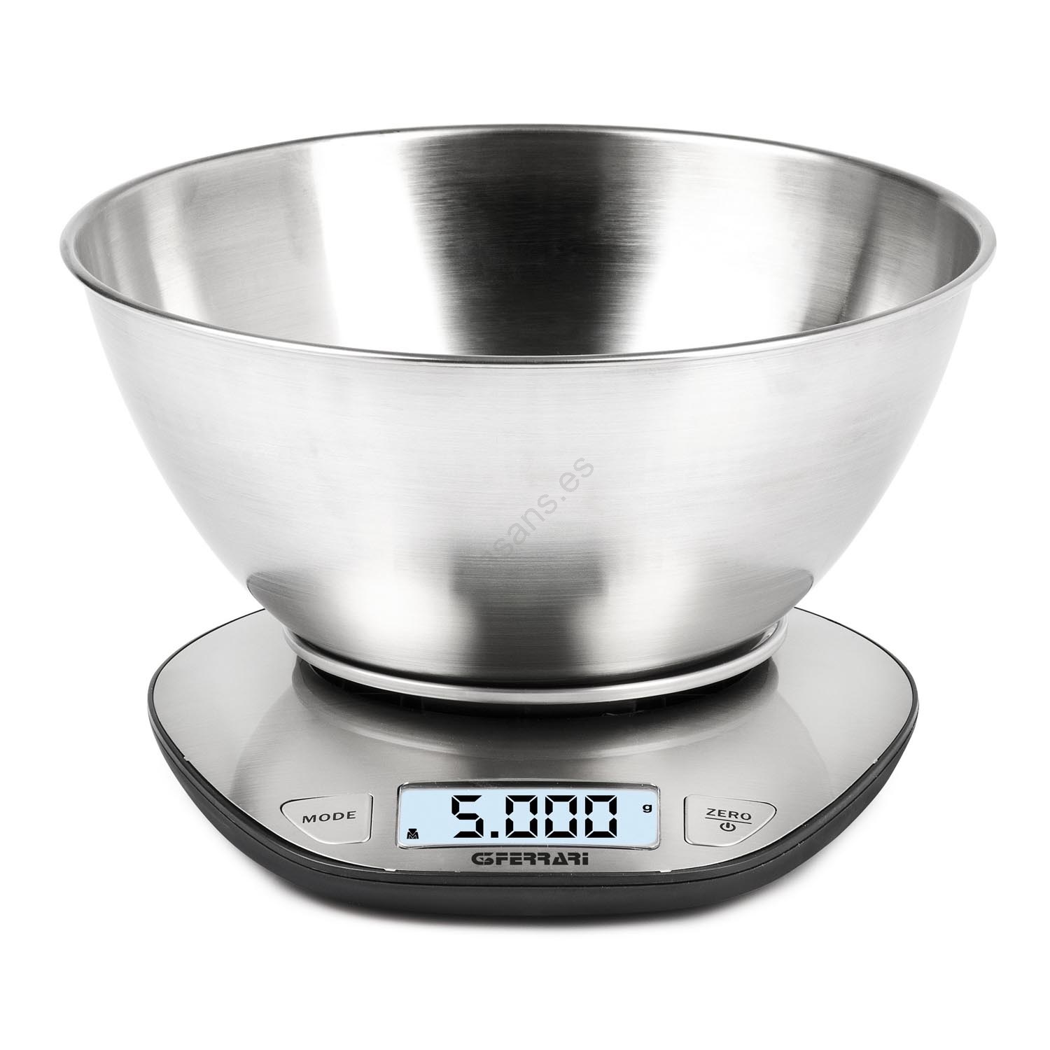 G3Ferrari G2006200 - Balanza de cocina digital con cuenco de acero inoxidable, 2xAAA