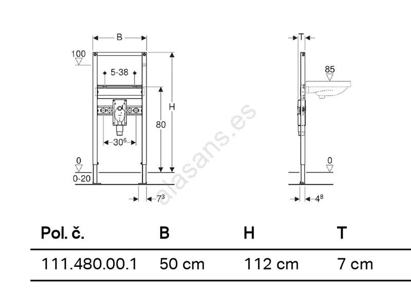 • Elemento de montaje para lavabo duofix, diseñado para su instalación en falso muro.