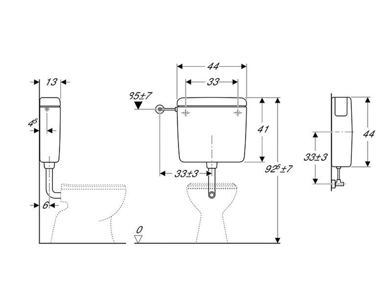 • Cisterna de descarga de baja altura para instalación en superficie (sobre enlucido).