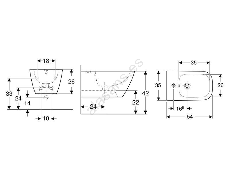 • Está fabricado en cerámica sanitaria y es de color blanco.