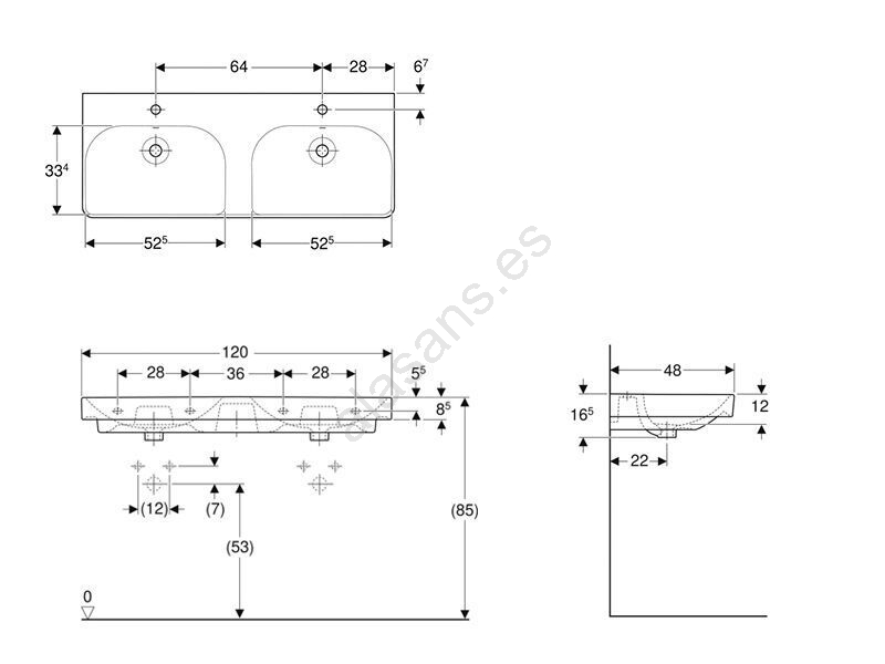 Geberit 500.223.01.1 - Lavabo doble mural Smyle Square 120x48 cm cerámica/blanco