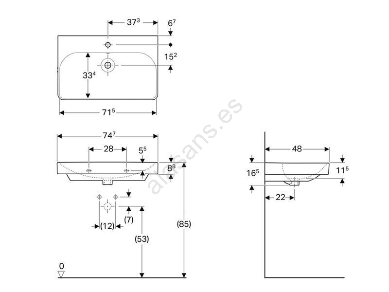 Geberit 500.249.01.1 - Lavabo suspendido Smyle Square 75x48 cm cerámica/blanco