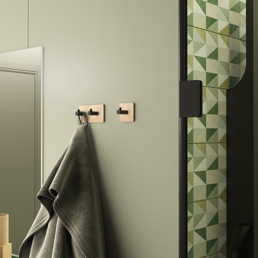 Gedy - Toallero de pared autoadhesivo HIMALAYA negro/bambú