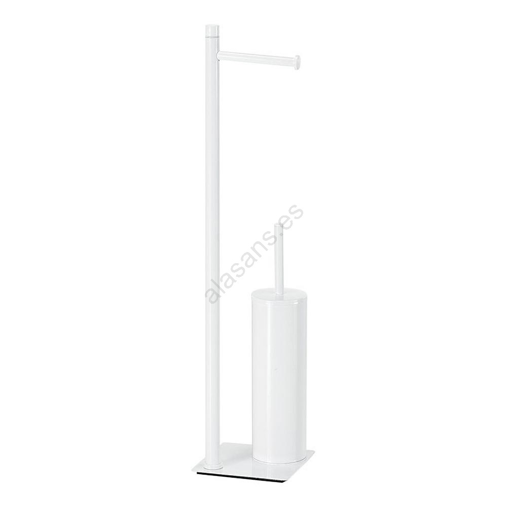 Gedy - Escobilla de inodoro de pie con portarrollos TRILLY blanco mate