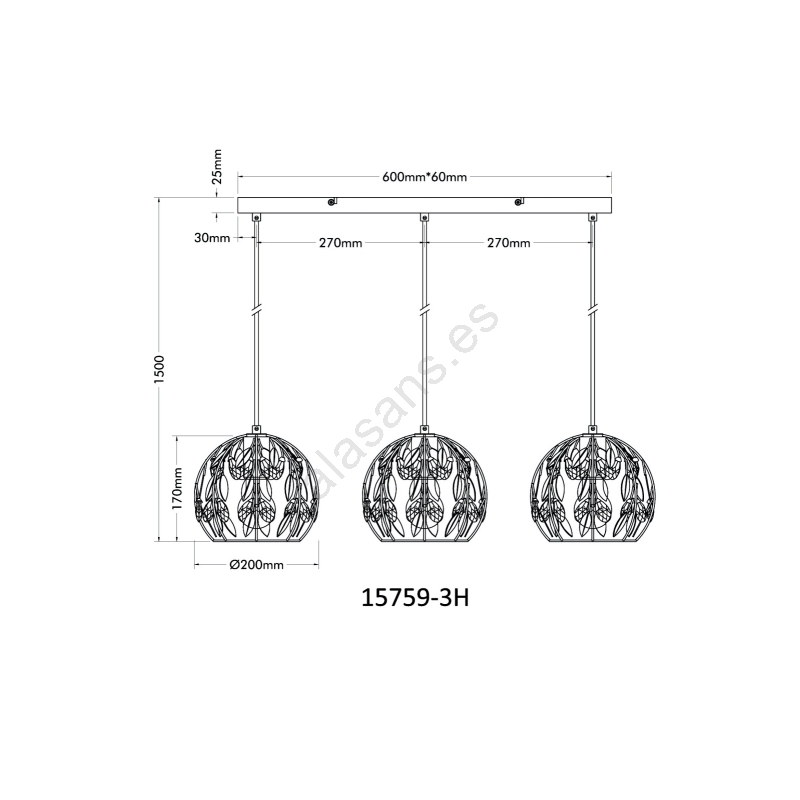 Globo - Lámpara colgante con cable 3xE27/40W/230V