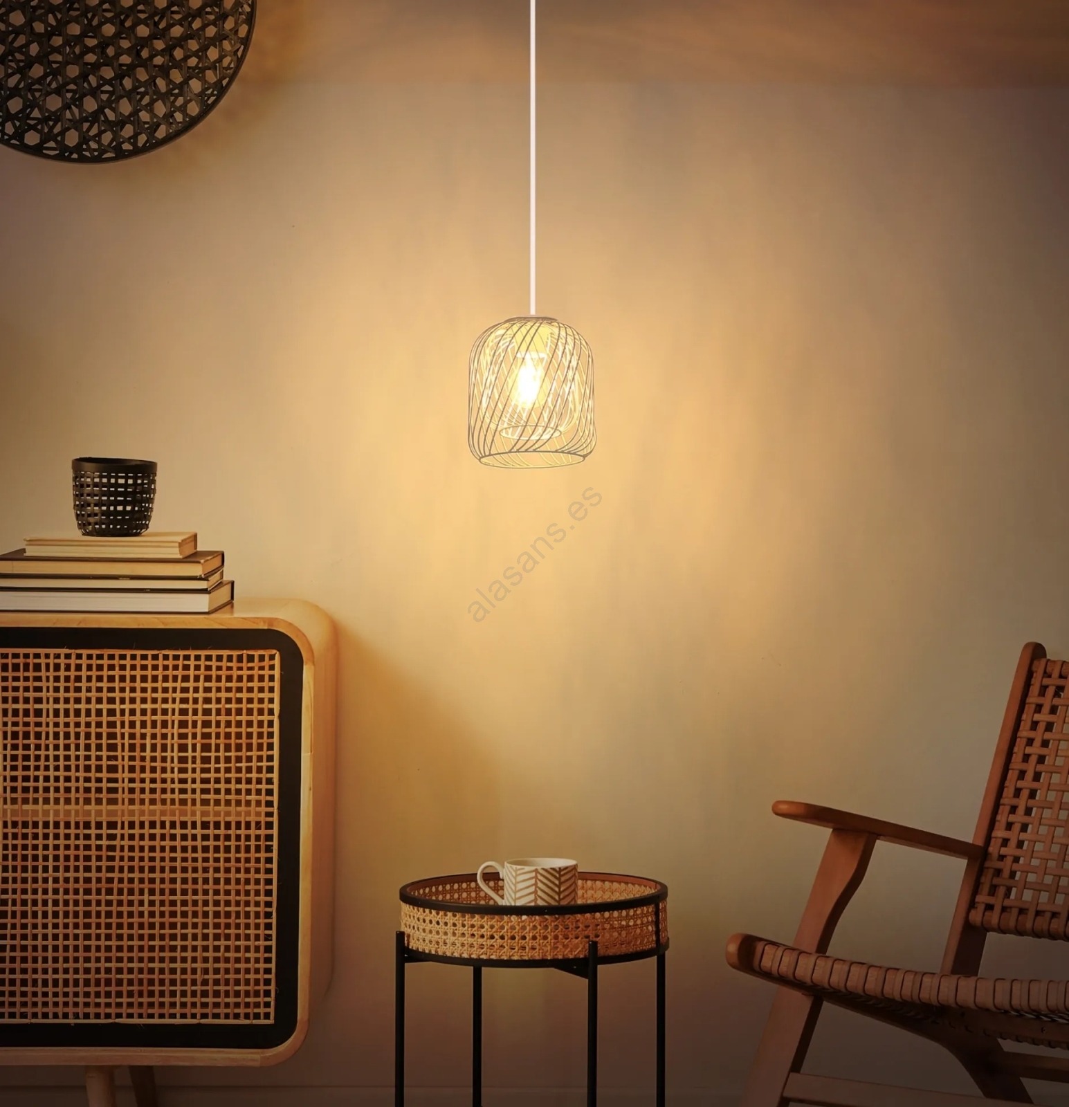 Globo - Lámpara colgante con cable 1xE27/40W/230V Ø 18 cm beige/blanco