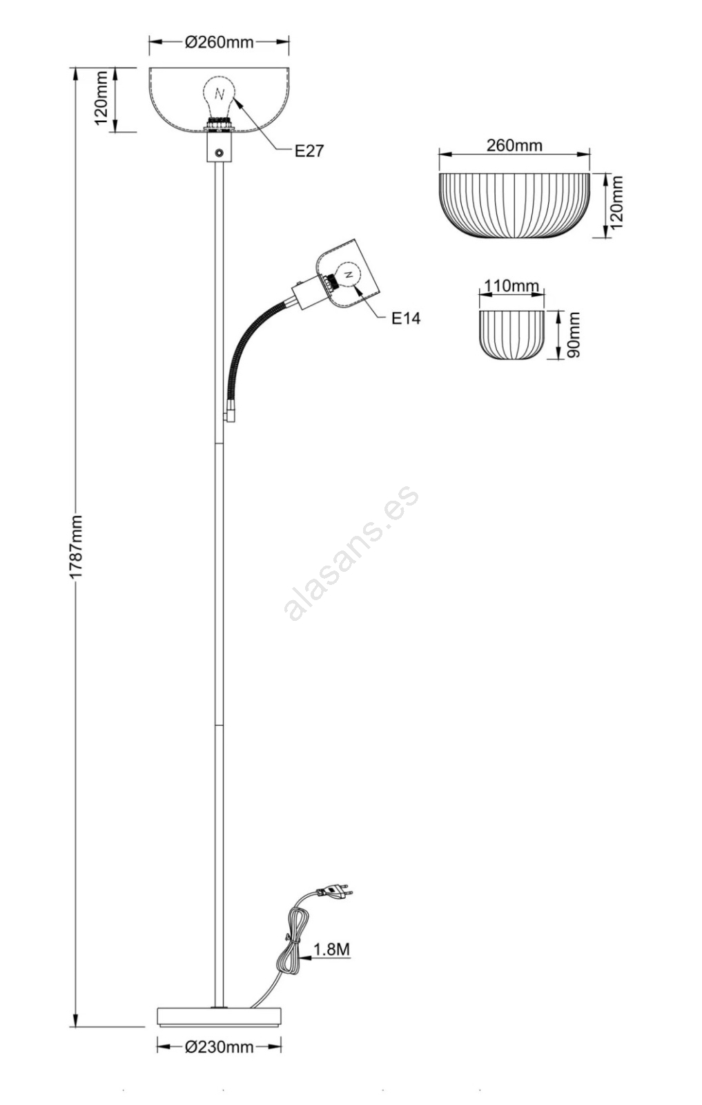 • Globo - Lámpara de pie 1xE27/40W/230V + 1xE14/25W