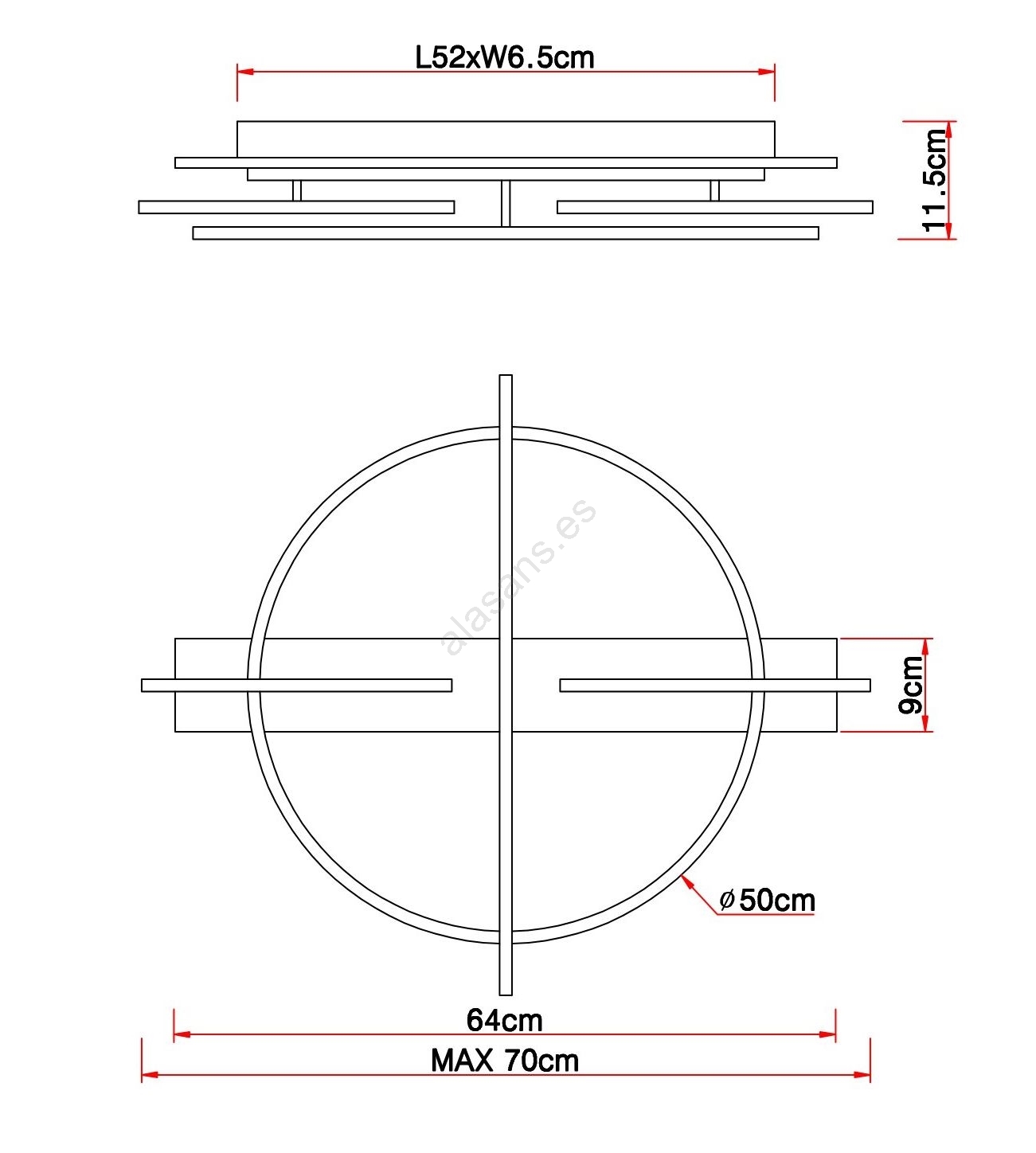 • Los brazos giratorios y el panel LED circular interior se controlan de forma independiente mediante un interruptor de pared convencional.