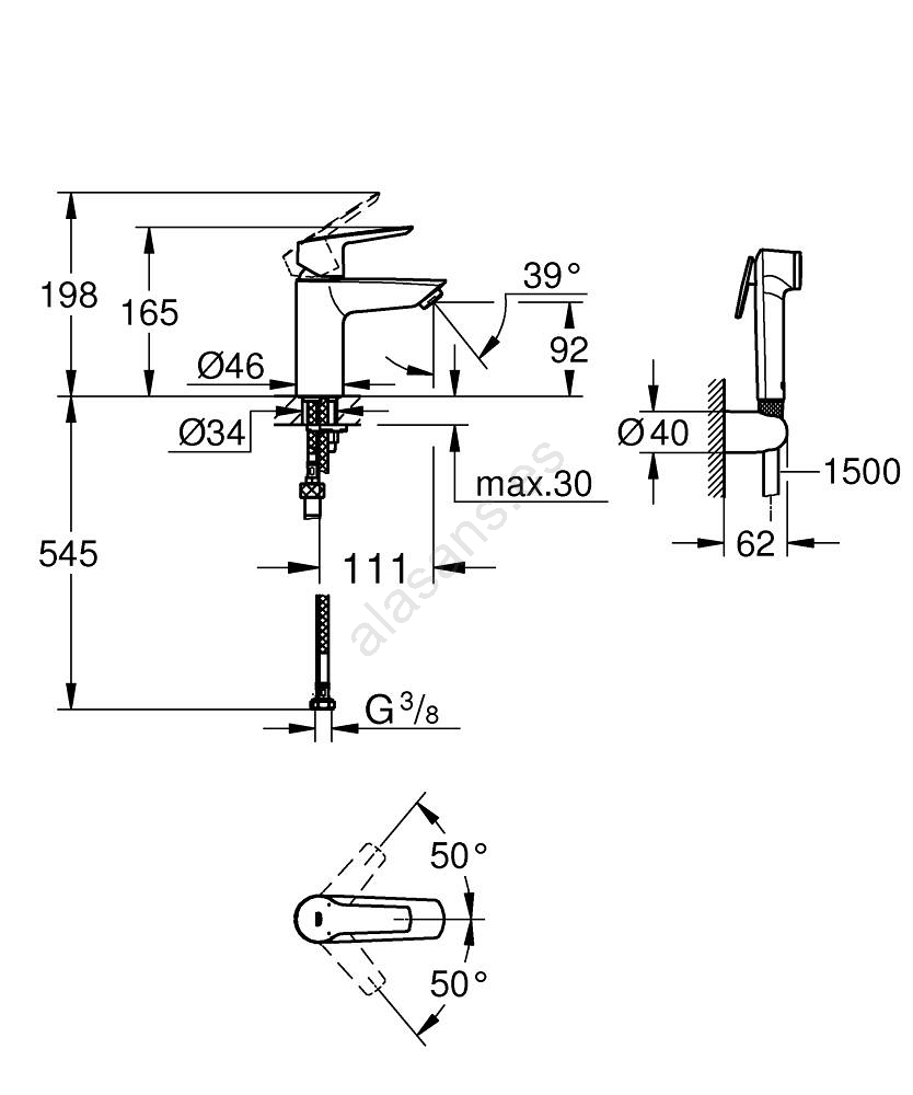 • Aireador GROHE Water Saving con un caudal de 5,7 l/min para un aprovechamiento eficiente del agua.