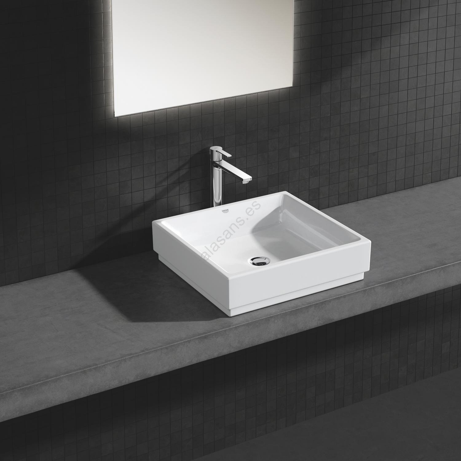 • Grifo monomando elegante GROHE Lineare con caño extra alto, ideal para lavabos exentos.