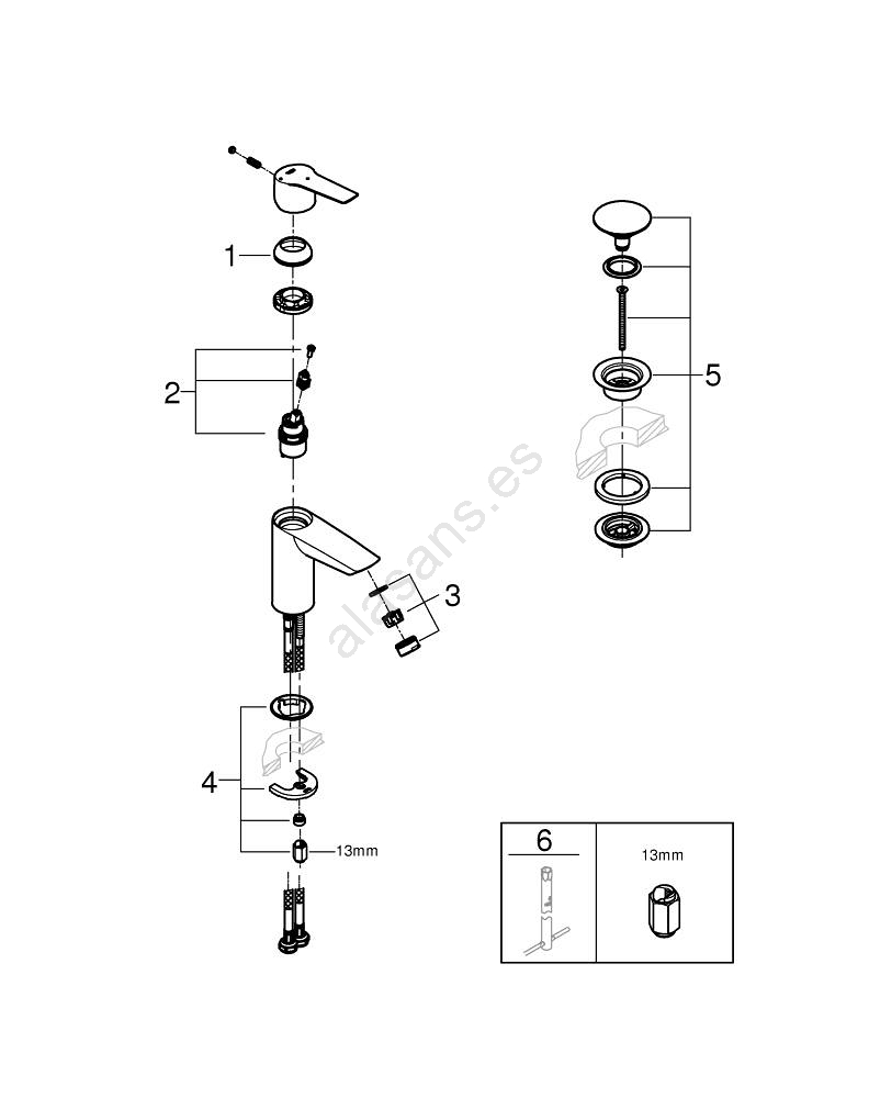 • GROHE QuickTool incluido en el embalaje para un montaje rápido y sin complicaciones.