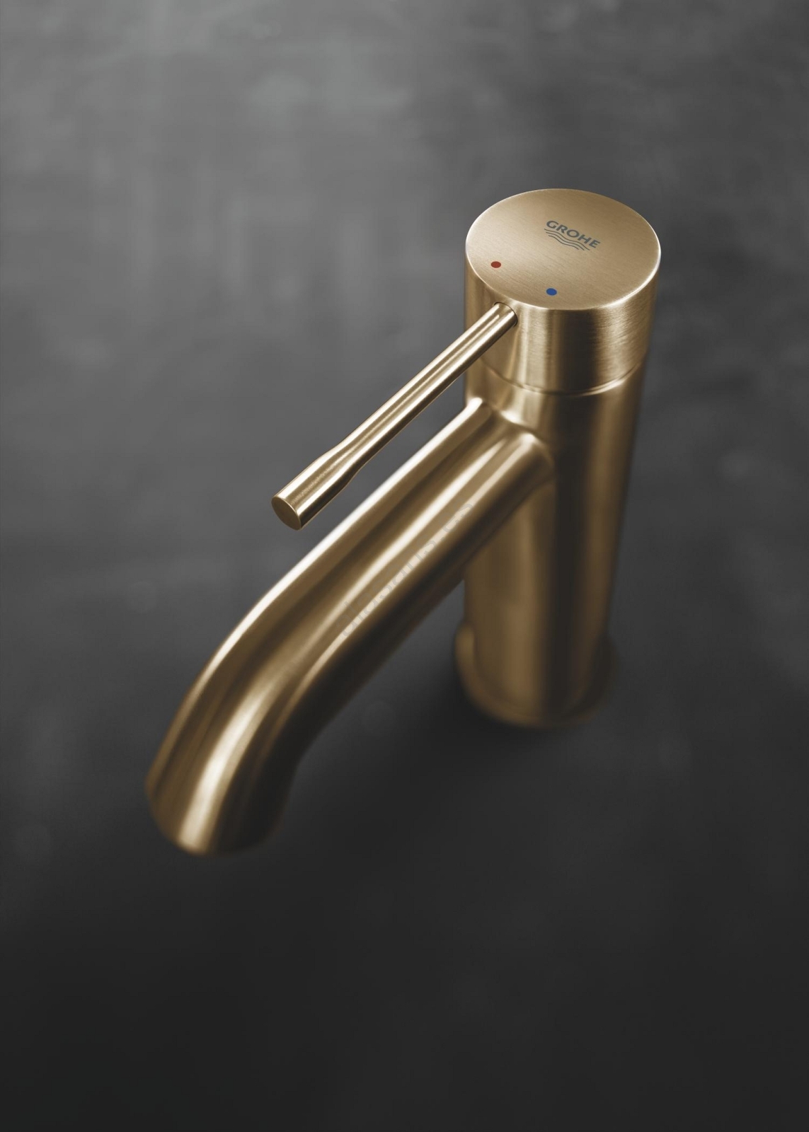 • Grifo monomando para lavabo GROHE Essence en acabado Cool Sunrise.