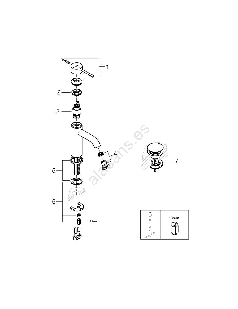 • Cartucho cerámico GROHE SilkMove ES 28 mm con función de ahorro de energía en arranque en frío.