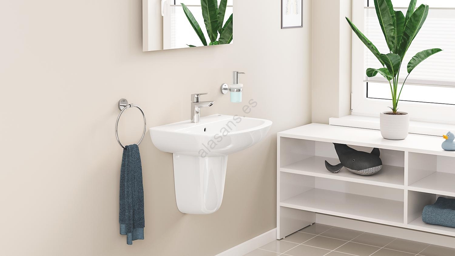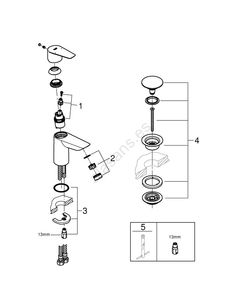 • Aireador GROHE Water Saving con caudal de 5,7 l/min para ahorro de agua.