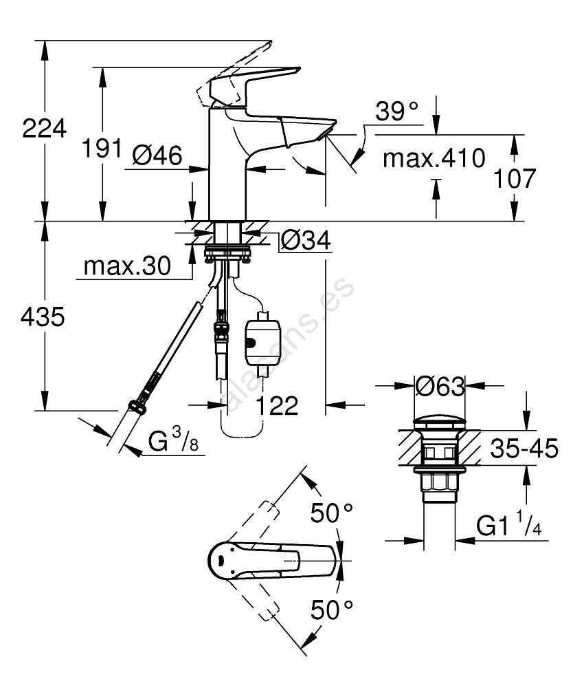 • Aireador GROHE Water Saving con caudal de 5,7 l/min para un funcionamiento ecológico.