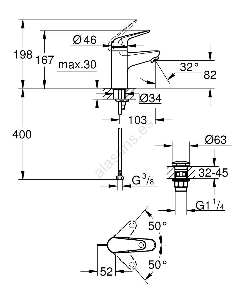 • Tecnología GROHE Water Saving que reduce el consumo de agua a 5 l/min a 3 bares de presión.