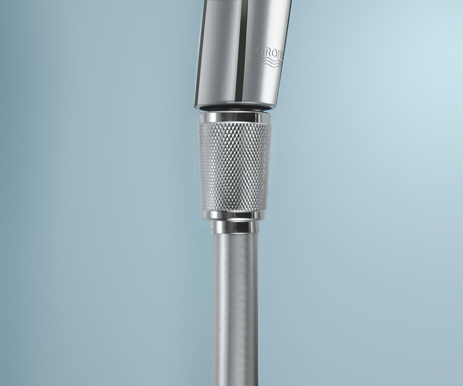 • Tuerca GROHE ProGrip con textura acanalada para un apriete sencillo.