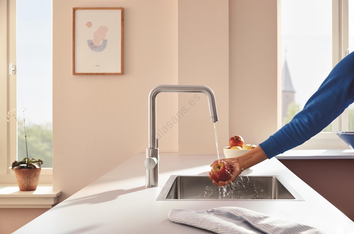 • Grifo monomando GROHE Blue con función de filtrado integrada para agua limpia y de excelente sabor.