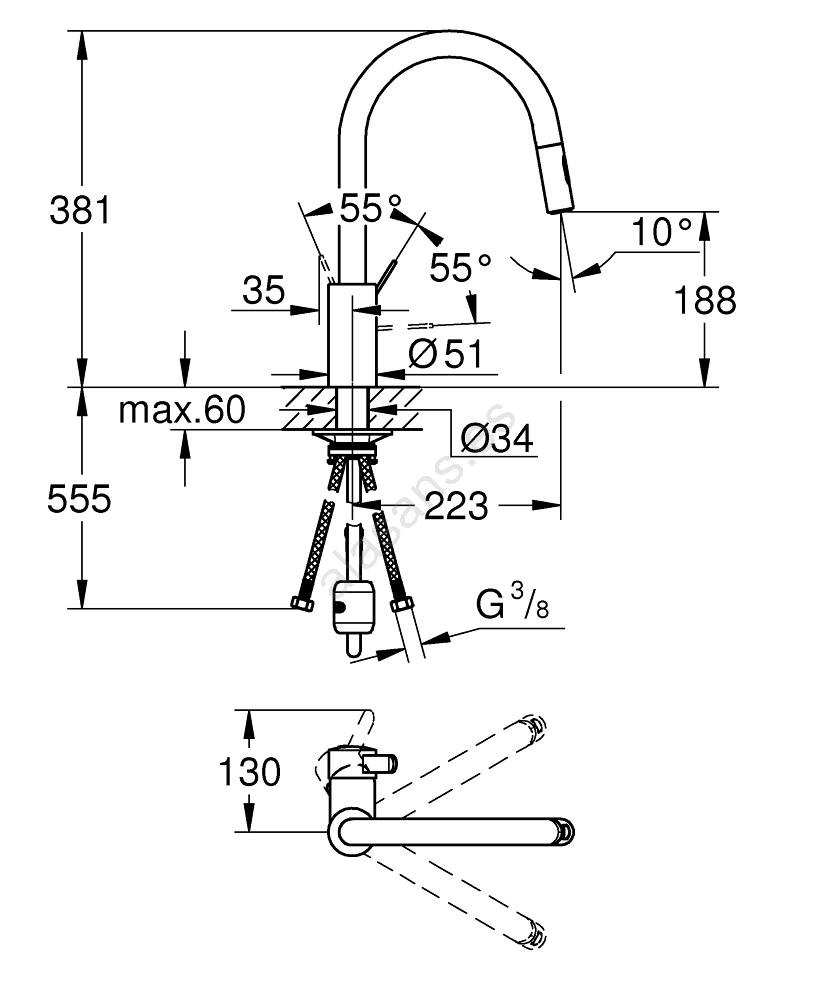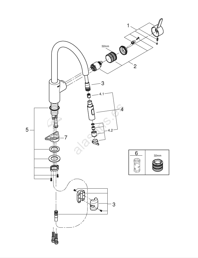 • Tecnología GROHE EasyDock para un retorno suave del rociador a su posición.